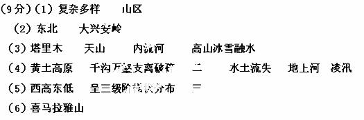 讀我國(guó)地形分布圖,回答下列問(wèn)題。(9分)