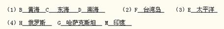 (1)填出圖中我國主要的島嶼、瀕臨海洋、鄰國及大洋的名稱: