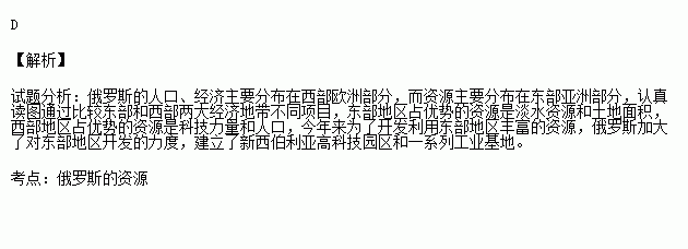 讀下圖 “俄羅斯亞洲部分和歐洲部分幾種資源比例示意圖”,判斷俄羅斯亞洲部分占優(yōu)勢(shì)的資源是( )