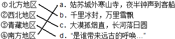 (4)請(qǐng)把地理區(qū)域與對(duì)應(yīng)的描述詩(shī)句或歌詞用線連起來(lái).