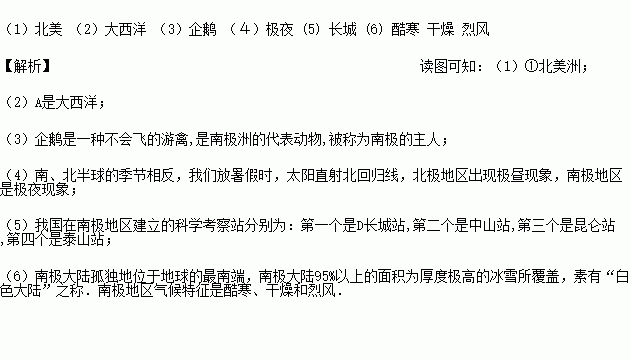 (5)目前,我國在南極洲共建立了四個科學考察站,其中D是 站。
