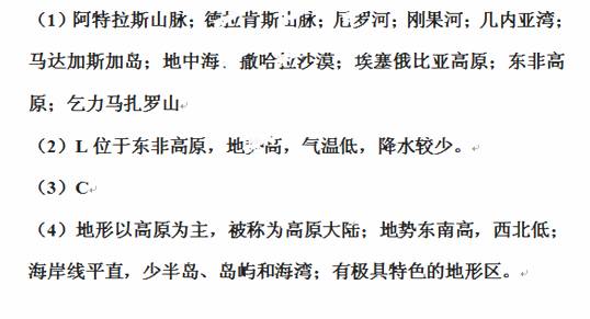 (4)非洲的地形有哪些特點(diǎn)?