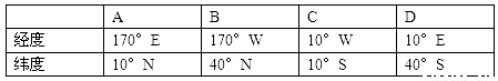 (2)圖中四點中,位于東半球的是__________;位于低緯度地區(qū)的是___________。