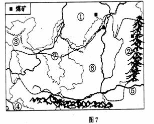 (1)寫出下列數碼所表示的地形區(qū)名稱。
