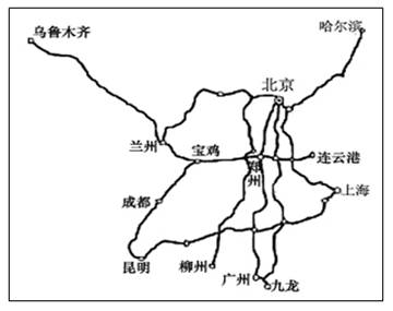 中國鐵路運(yùn)輸略圖,為廣州的青青同學(xué)外出旅游出謀劃策。6分)