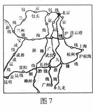 鐵路運(yùn)輸是一種適宜于長(zhǎng)距離運(yùn)送客、貨的現(xiàn)代化運(yùn)輸方式。讀我國部分地區(qū)鐵路分布圖(圖7),回答20—21題。