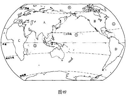 (1)寫出圖中字母所表示的大洲名稱A. B. C. D.