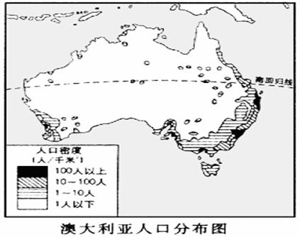 讀"澳大利亞人口分布圖",回答: