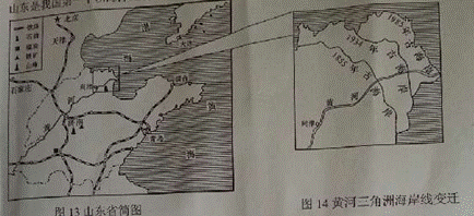 (3)結(jié)合圖14說(shuō)出黃河口三角洲面積的變化趨勢(shì)及其原因。(2分)