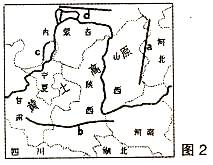 4. 圖2中表示太行山和秦嶺的字母分別是