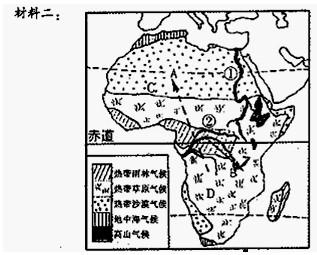 讀材料和非洲氣候分布示意圖,完成下列各題。