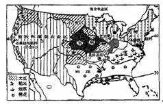 (4)由下圖可見,美國農(nóng)業(yè)生產(chǎn)的特點(diǎn)是地區(qū)生產(chǎn)的 化和 化,形成了一系列農(nóng)業(yè)帶。