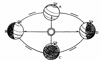 (4) 由于地球在圖中A、B、C、D的不同位置,受________的情況不完全相同,從而形成春、夏、秋、冬四季。北半球和南半球的季節(jié)正好_______。