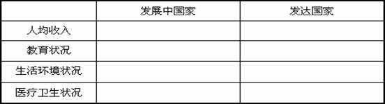 ①以上三則資料反映了世界上不同國家間______的差異。根據(jù)此差異,通常把世界上的國家分為發(fā)達(dá)國家和發(fā)展中國家,A類是______,B類是______。我國是______國家。