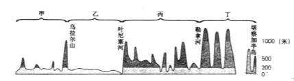 讀俄羅斯境內(nèi)60°N地形剖面圖,并結(jié)合所學(xué)知識,完成以下小題。