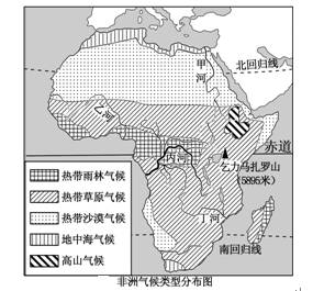 讀圖“非洲氣候類型分布圖”,完成以下小題。
