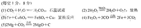 (5)金屬鎂著火不能用二氧化碳撲救,因?yàn)殒V可以在二氧化碳中繼續(xù)燃燒生成氧化鎂和碳單質(zhì): ▲ 。