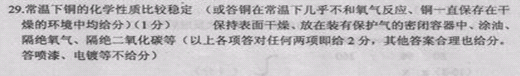 (09綏化)我國外交部鄭重聲明,今年2月25日在法國佳士德拍賣行拍賣的兩件文物鼠首和兔首,其所屬權(quán)為中國。這兩件文物均屬于我國圓明園流失在國外的精美銅飾品。銅在常溫下幾乎不和氧氣反應(yīng),在潮濕的環(huán)境中銹蝕速度也比較慢,其主要是和空氣中的氧氣、二 氧化碳、水蒸氣共同作用而生成銅銹。試回答:銅飾品為什么能長久的保存仍然精美如初? 如果你是收藏者,為防止銅制文物銹蝕應(yīng)當(dāng)注意什么?(答兩點即可)