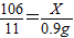 X 10.9g-10.0g=0.9g