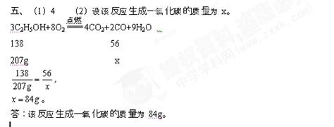 (2011安徽蕪湖,16題)乙醇是一種清潔燃料,但在氧氣不足時燃燒,會生成一氧化碳,現有207g乙醇與一定量的氧氣點燃后發(fā)生如下反應:3C2H5OH+8O2點燃 XCO2+2CO+9H2O
