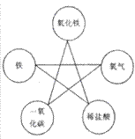 ①在圖1中將一定條件下所有能發(fā)生反應的兩種物質(zhì)用“——”連接起來: