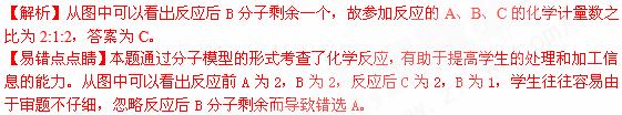 下列示意圖形象地表示了A( )與B( )反應生成C( )其反應前后分子及數(shù)目的變化,則該反應的化學方程式中,A、B、C的化學計量數(shù)之比為( )![]()