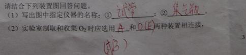 (2)實驗室制取和收集O2時應(yīng)選用 和 兩種裝置相連接,