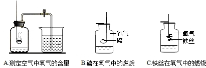 A測(cè)定空氣里氧氣的含量 B硫在氧氣里燃燒 C鐵絲在氧氣里燃燒