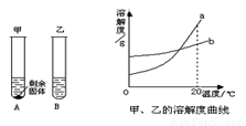 (1)20°C時,____________(填“A”或 “B”)試管中的溶液一定是飽和溶液;