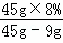 電解水時,常在水中加入硫酸使反應(yīng)容易進行,硫酸本身并不被分解.現(xiàn)用45g溶質(zhì)質(zhì)量分數(shù)為8%的硫酸溶液進行電解水的實驗,一段時間后,產(chǎn)生1g氫氣.計算: