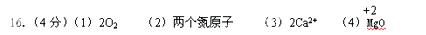 (3)2個(gè)鈣離子 ; (4) 氧化鎂中鎂元素呈正二價(jià) 。