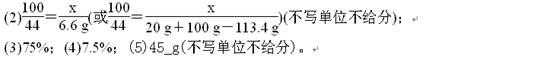 (5分)某化學(xué)興趣小組欲測定某石灰石樣品中碳酸鈣的質(zhì)量分?jǐn)?shù)。取20 g石灰石樣品(假設(shè)雜質(zhì)既不溶于水,也不與其他物質(zhì)反應(yīng)),向其中加入100 g一定溶質(zhì)質(zhì)量分?jǐn)?shù)的稀鹽酸,恰好完全反應(yīng),稱得固液混合物的質(zhì)量為113.4 g。請(qǐng)回答下列問題: