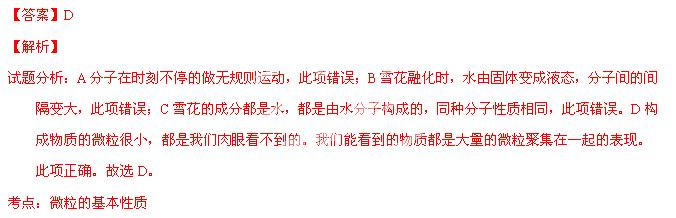 雪花,被人們稱為“冬之精靈”,科學(xué)研究發(fā)現(xiàn),世界上沒有兩片雪花的形狀完全相同的.下列有關(guān)說法正確的是 ![]()