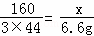 | 解答: | 解:(1)由圖象知,反應(yīng)產(chǎn)生二氧化碳的質(zhì)量為106.6﹣100.0=6.6g,故填:6.6; (2)設(shè)赤鐵礦石中氧化鐵的質(zhì)量為x, 3CO+Fe2O3 x 6.6g