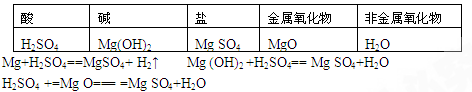 | 物質(zhì)類別 | 酸 | 堿 | 鹽 | 金屬氧化物 |