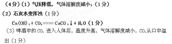 (1) 打開啤酒蓋時,啤酒會自動噴出來,原因是: