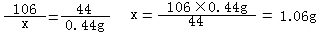 26.(6分)解:反應(yīng)生成CO2的質(zhì)量為5.3g+20g—24.86g=0.44g (1分)