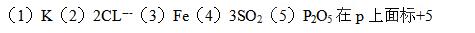 (4)3個(gè)二氧化硫分子 ;(5)五氧化二磷中磷元素為+5價(jià) 。