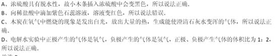 | A.小木條插入濃硫酸中,取出后小木條變黑色 |