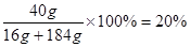 (3分)16g Fe2O3與184g稀H2SO4恰好完全反應(yīng),求所得Fe2(SO4)3溶液的溶質(zhì)質(zhì)量分?jǐn)?shù)?