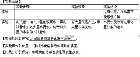 【拓展分析】如果水泥塊反應(yīng)前后在質(zhì)量不變,則說(shuō)明水泥塊可以作為雙氧水分解的催化劑。