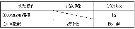 粉末部分溶解,并有氣體放出. | 合金中一定含有 鋁 鋁 . |
