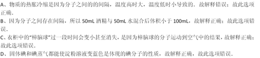 16、下列對一些事實的解釋不正確的是( 。