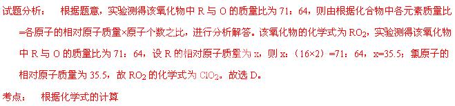 地震過后,防疫部門常用到一種高效安全滅菌消毒劑,該消毒劑可表示為RO2,主要用于飲用水消毒。實驗測得該氧化物中R與O的質(zhì)量比為71∶64,則RO2的化學(xué)式為( )