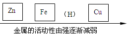 (1)將Fe、Cu、Zn三種金屬的活動順序填入下列空格中: