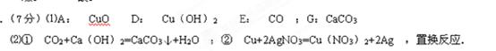 ⑴寫出下列字母所代表物質的化學式:A: D: E: ;G: 。