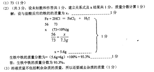 生鐵與鹽酸剛好反應(yīng)完全時(shí)所得溶液質(zhì)量=(73+6
