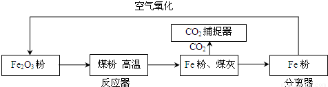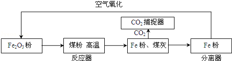 煤的清潔利用是目前全球熱門的研究課題,其中的關(guān)鍵是如何處理煤燃燒后產(chǎn)生的二氧化碳.某研究小組研究開發(fā)利用煤直接化學(xué)循環(huán)技術(shù),成功使煤釋放熱量的同時,捕獲了反應(yīng)過程中產(chǎn)生的99%的二氧化碳.該方法的流程如圖所示:![]()
