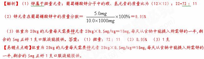 (1)該口服液中的鋅屬于 (填:“常量”或“微量”)元素;葡萄糖酸鋅分子中的碳、氫元素的質(zhì)量比為 。