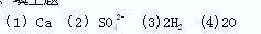 ⑴鈣元素 ⑵1個(gè)硫酸根離子 ⑶2個(gè)氫分子 ⑷2個(gè)氧原子